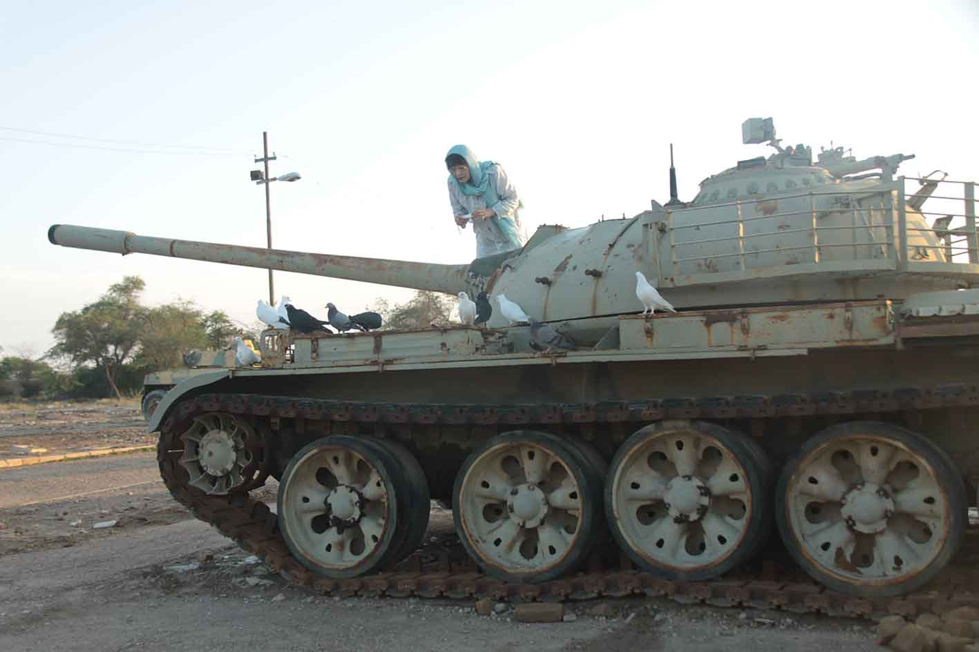soybeans and pigeons on tanks left over from the Iran-Iraq war